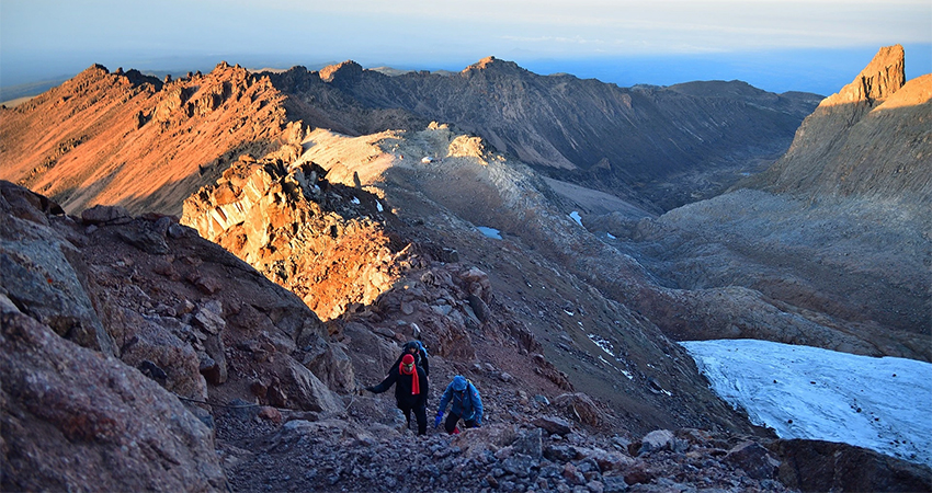 DAY 4: Departure Shipton (4200m) – Point Lenana(4,985m) – Mt Kenya Bandas (2,900m)